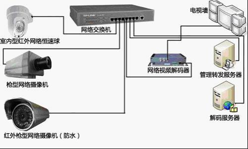 如果要求晚上或者在燈光較案的時候也能夠看到清晰的時候,此時可選擇安裝防水紅外型網(wǎng)絡(luò)攝像機,接入交換機,最終接入到監(jiān)控管理中心。