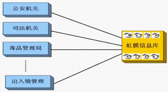 監獄系統作為犯人虹膜信息采集的最佳渠道, 由各監獄將犯人虹膜信息納入檔案內容,形成身份信息數據庫。當該數據庫逐步覆蓋全國監獄系統時,數據庫可以與其他執法部門,例如公安機關、司法機關和毒品管理局等機構共享,延伸它的使用功能。其社會意義在于強化對危機社會治安的危險群體的控制,這體現信息資源共享的極大優勢。