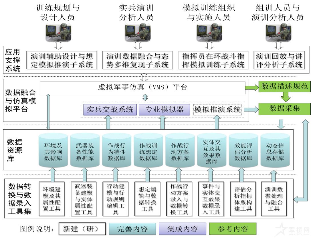 裝甲合成營戰術對抗模擬訓練系統由應用支撐系統、數據融合與仿真模擬平臺、數據資源庫和數據輪換與數據錄入工具集組成,其系統軟件架構如下圖所示。