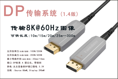 在本屆中國國際智能建筑展上,華光昱能Hangalaxy重點展示了HDMI/DP兩款接口的8K信號光纖傳輸線。其中,8K DP光纖線傳輸距高最長可以達到300米,8K HDMI光纖線傳輸距高最長達到100米。此外,還有傳輸距離長達300米的DVI接口光纖線;帶寬5Gbps,最長傳輸距離達100米的USB3.0接口光纖線。
