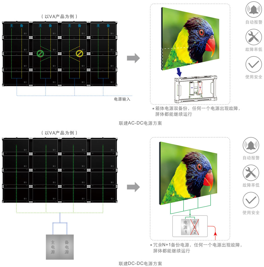 ◆ 強弱電分離,顯示單元無強電,支持熱插拔搶修、無需關屏、安全快捷