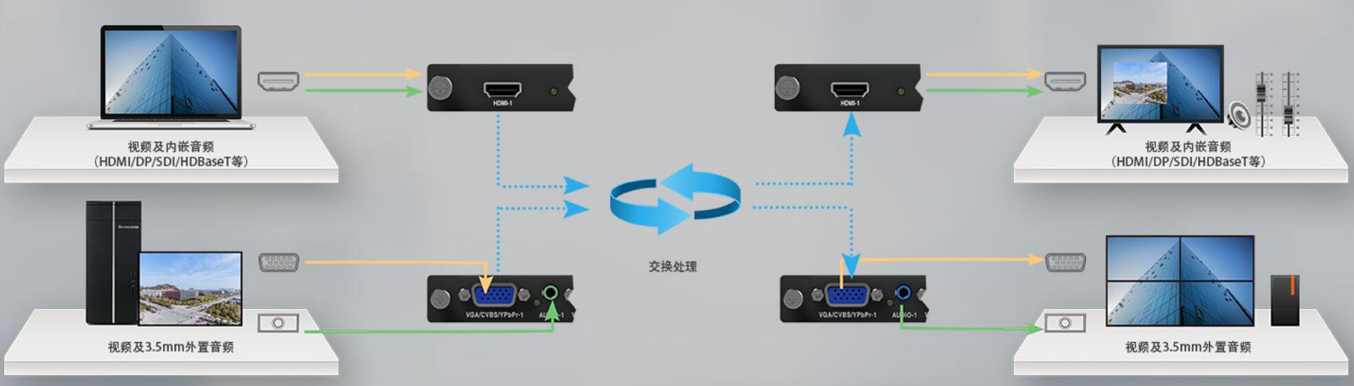 支持音頻信號傳輸,靈活完成隨路音頻同步切換、音量調節、多路混音輸出、音視頻預案調用等操作,實現對音頻信號的智能化管控。