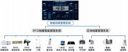 智能檔案管理系統是以實體檔案管理設備為核心,通過先進的RFID技術實現對檔案架上檔案的高效、安全管理。實現無序存放、有序管理、自動盤點、自動出入庫記錄等。系統整體組成包括RFID檔案智能管理系統、實體檔案管理系統,如下圖所示: