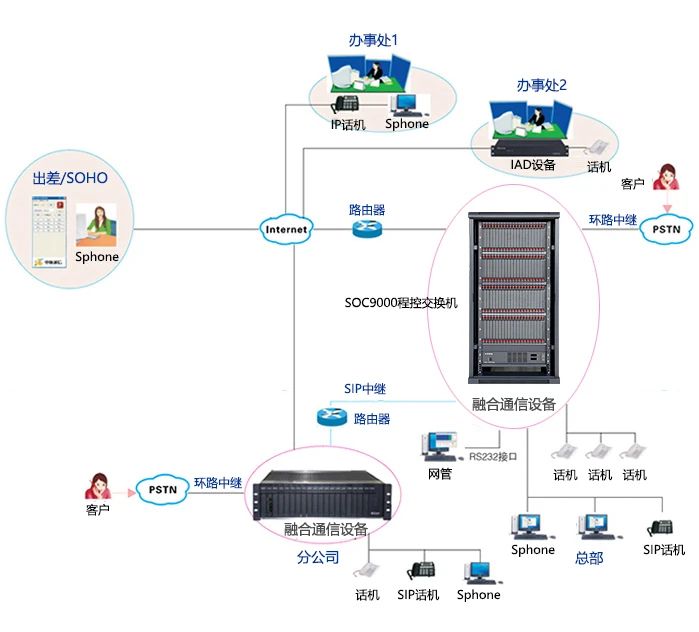 SOC9000程控交換機(jī)集成了眾多先進(jìn)功能,如呼叫轉(zhuǎn)移、呼叫等待、三方通話、會議電話等,并支持來電顯示、語音信箱、自動話務(wù)員等增值業(yè)務(wù)功能,大大提升了用戶體驗(yàn)。同時,它支持多種中繼接口,如模擬中繼、數(shù)字中繼(如PRI/E1等)、IP中繼等,確保與各種通信網(wǎng)絡(luò)的順暢連接。此外,SOC9000還提供了靈活的組網(wǎng)方案,支持星型、樹型、網(wǎng)狀等多種網(wǎng)絡(luò)拓?fù)浣Y(jié)構(gòu),滿足企業(yè)多樣化的組網(wǎng)需求。